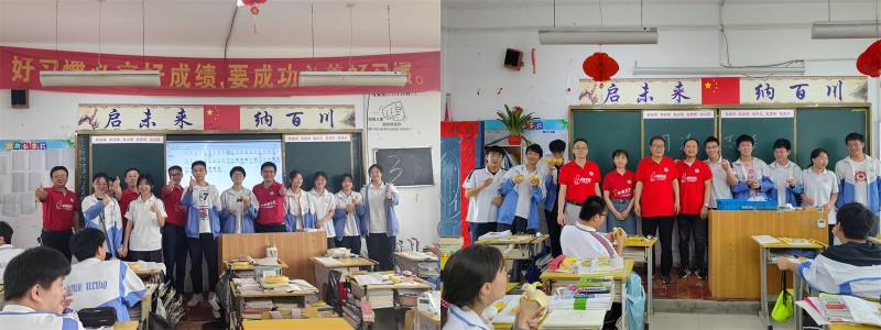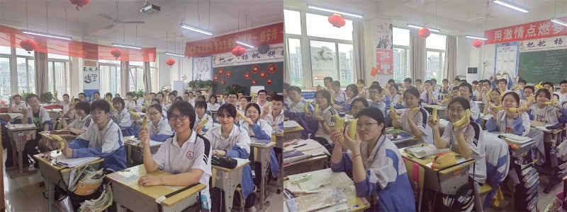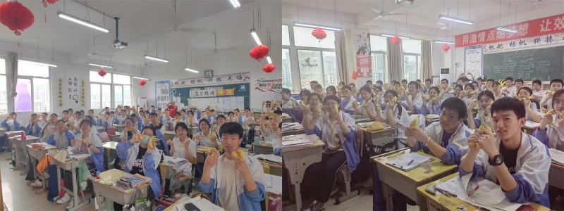 6月4日早上,学校为同学们准备了爱心蛋挞和香蕉,金灿灿的蛋挞香浓酥脆、口感香甜,代表着圆圆满满。希望高三学子们能够在2023年高考中完美发挥,取得圆满的好成绩。学校领导和老师们把香甜的蛋挞和香蕉送到学生手中,并为他们送上了美好祝愿,给同学们带来了欢声笑语,更带来了鼓舞和力量。香蕉和两个蛋挞的组合寓意机智满分、运气满分、高考满分。同学们,高考加油!高考必胜!