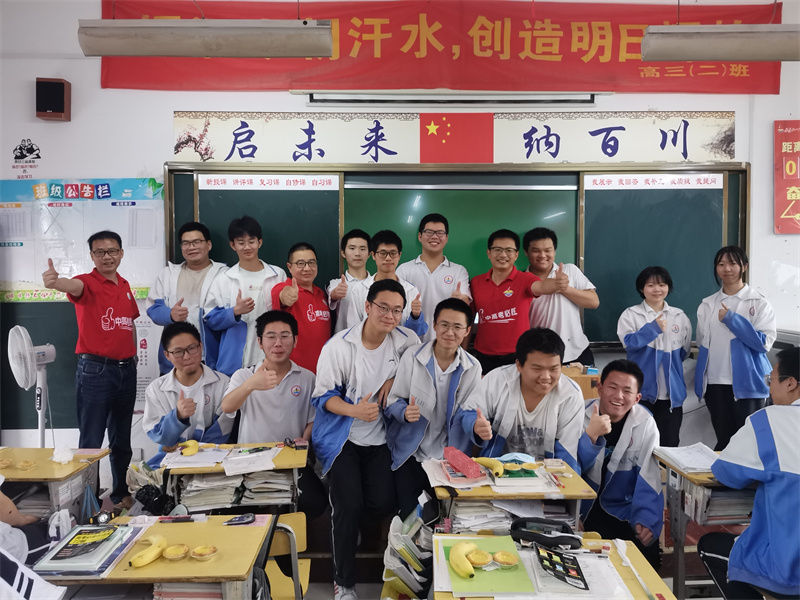 临别之际,全体高三班主任登台,为同学们送上高考的祝福。