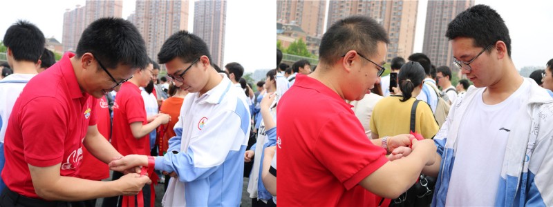 依依惜别话难尽,殷殷嘱咐记心头。班主任和老师们为学生系上“希望丝带”,把印有“高考必胜”的爱心贴到学生的脸上。老师们还伸开双臂,热情拥抱每一位学生,慈母般千叮咛万嘱咐,不舍与祝福交织在一起。捋一捋头发,拍一拍肩膀,细小的动作传递浓浓爱意。情之所至志弥坚,相信全体高三学子会带着老师们的期盼与祝福心想事成,载誉而归。