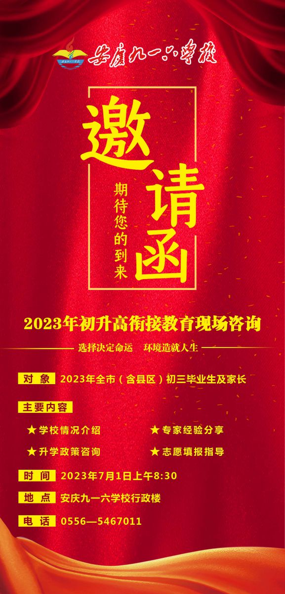 【邀请函】安庆九一六学校初升高衔接教育现场咨询活动