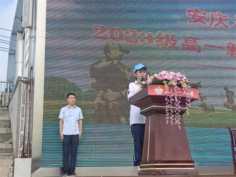 高一(1)班涂依琳代表新生发言。她表示会在训练过程中服从命令、听从指挥、甘愿吃苦、绝不退缩,把训练中形成的良好习惯,好思想、好作风继续发扬下去,融入到今后的生活和学习当中。
