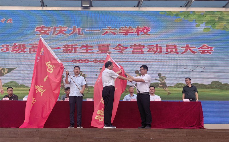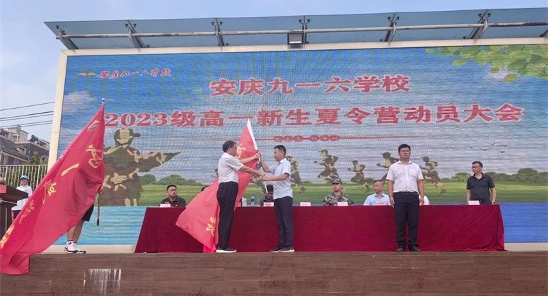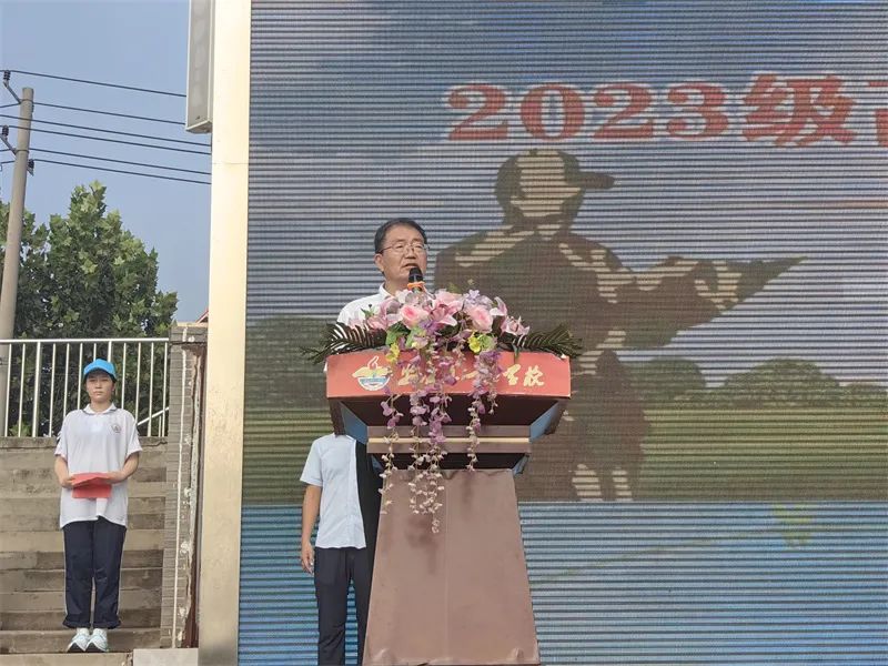 仪式最后,学校校长曹校长宣布2023级高一新生夏令营正式开营,并给高一两级部授旗。