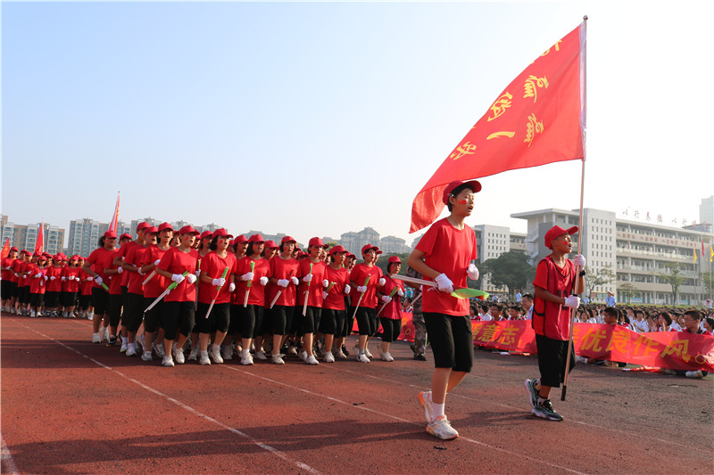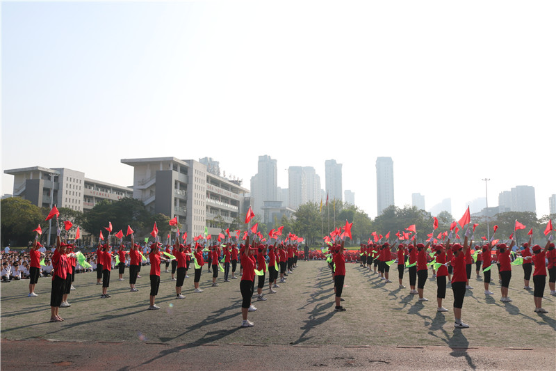 一曲国歌,慷慨激昂,吹响了新学期奋进的号角;一面红旗,愈升愈高,点燃了青春的激情。全体师生面对冉冉升起的五星红旗,行庄严的注目礼。汇演在庄严的国歌声中拉开帷幕。