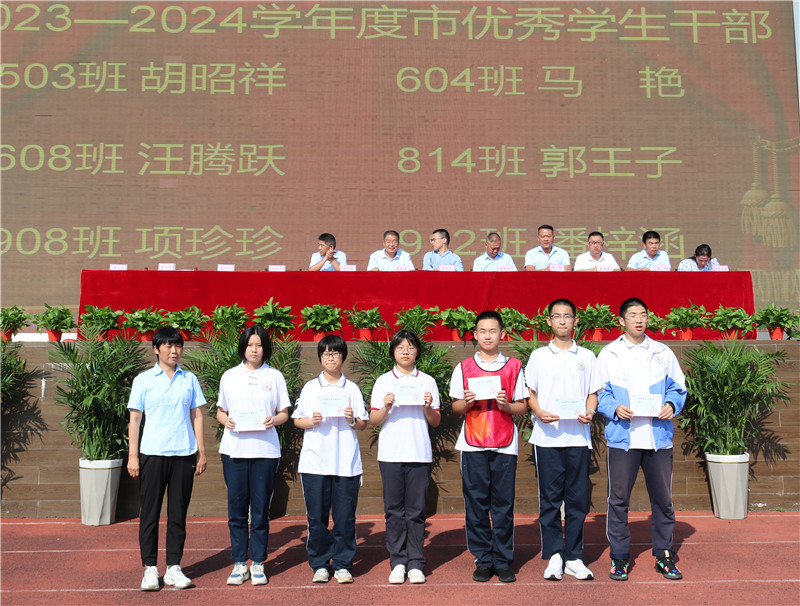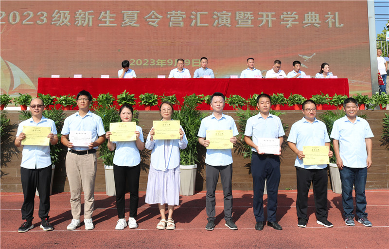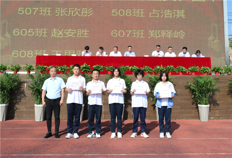 表彰仪式环节,学校及校领导为上学年表现突出的先进集体和优秀个人以及夏令营训练中表现突出的先进班集体颁奖。