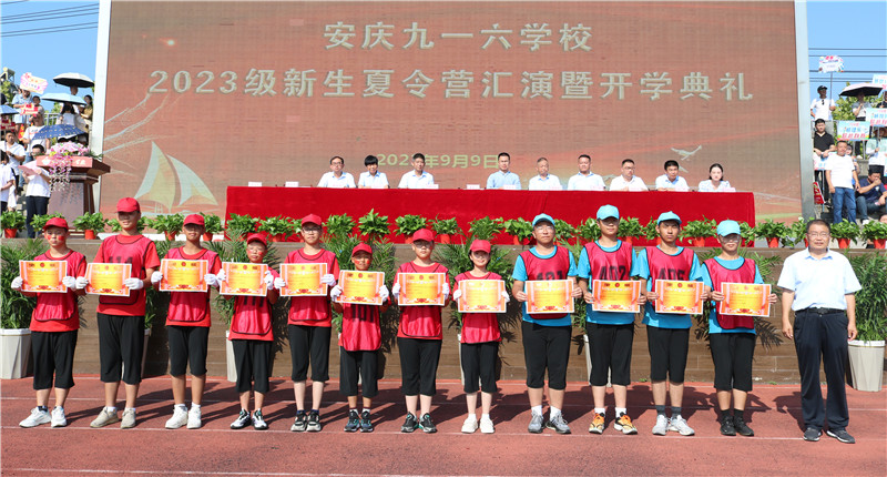 云淡天地阔,秋高清气爽。9月9日上午7点,安庆九一六学校2023级新生夏令营汇演暨开学典礼在学校操场隆重举行。学校领导、全体师生和新生家长齐聚运动场,共同见证这一盛会。