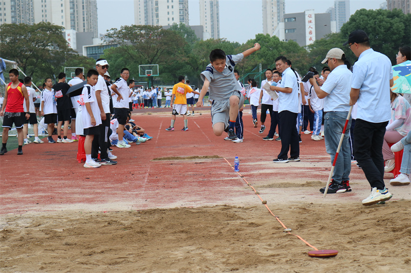 助跑、起跳、落地。身轻如燕地掠过沙坑,身后扬起的是尘沙,心中满怀的是热血。