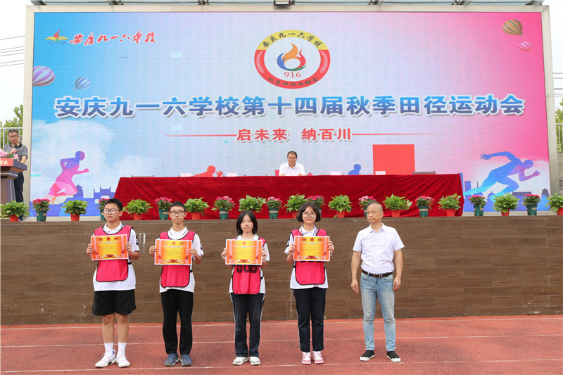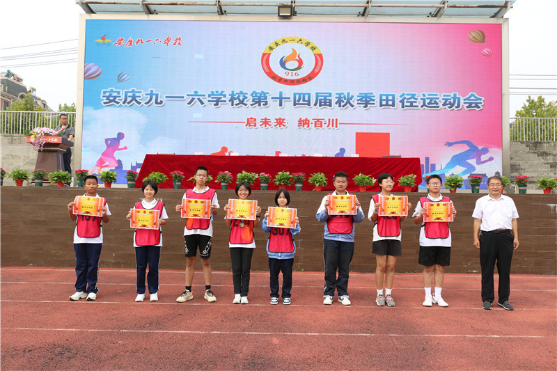 最后,曹校长宣布“安庆九一六学校第十四届秋季田径运动会圆满闭幕!”