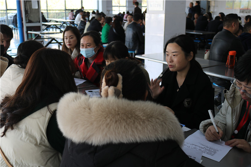 家校交流环节,班主任和任课老师与家长围坐在一起,面对面沟通,就孩子在校的学习现状、生活点滴以及课余活动等方面进行深入交流。同时,各班还以调查问卷的形式,了解家长对学校工作的满意程度及对学校教育教学工作的意见和建议。