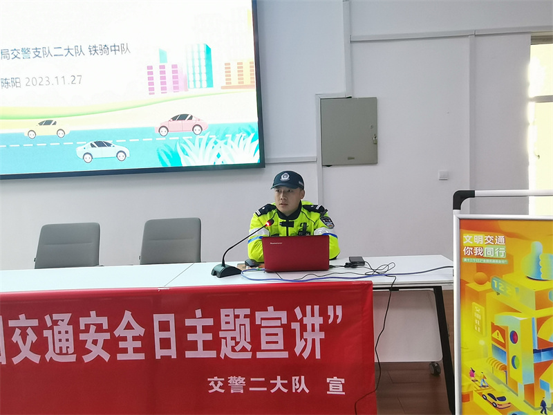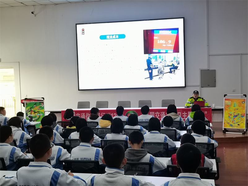 讲座中,交警二大队铁骑中队队长陈阳警官通过PPT、图片等形式,从学生的日常出行方式入手,向同学们讲解了交通安全的重要性,告诫学生要遵守交通规则,规范出行。如骑车时要“一盔一带”;步行时要集中注意,不能打闹;乘车时一定要系好安全带等。同时,陈警官还结合典型交通事故案例,以案释法,让学生们深刻认识到交通违法行为的危害性,引导他们自觉遵守交通法规,养成文明出行的良好习惯,并提高自我保护意识。