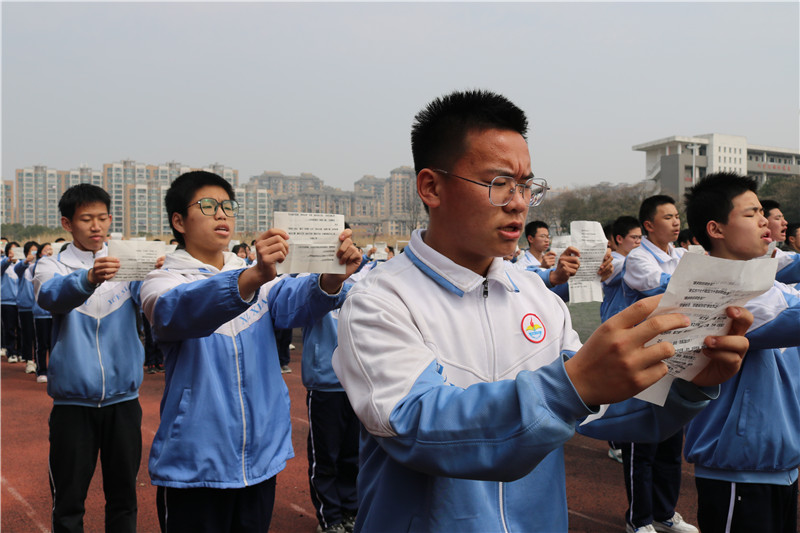 德国哲学家雅思贝尔斯说:“教育就是一颗树摇动另一棵树,一朵云推动另一朵云,一个灵魂唤醒另一个灵魂。”教育是需要激情氛围的,要让激情教育唤起学生们的内驱力。激情跑操和激情宣誓是我校特色化的激情教育活动,每日跑操的习惯,既增强了学生体质,也培养了学生持之以恒的毅力和良好的运动习惯。