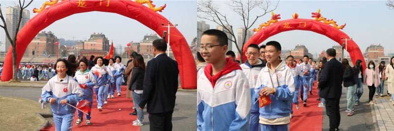 战鼓雷鸣,战旗飘扬,吹响了2024年中高考冲锋的号角。伴随着战鼓声声和激昂音乐,毕业班的学子们在班主任的带领下,踏着矫健的步伐,精神抖擞,意气风发地迈过状元门。
