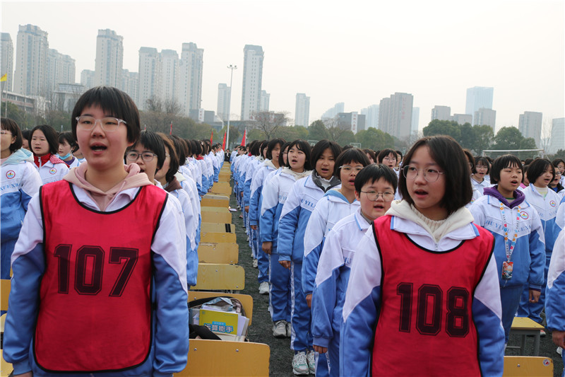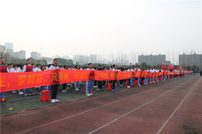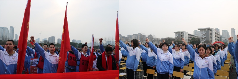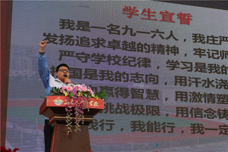 全体毕业班学生集体宣誓。他们激情满怀,庄严宣誓。以青春之名为冲刺梦想宣誓,以磅礴的力量打响冲锋的战斗。高昂的斗志已经点燃,他们用铿锵有力的声音,高喊出青春的梦想,发出备战中高考的最强之音。言出必行,誓必成功!