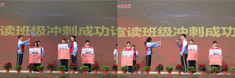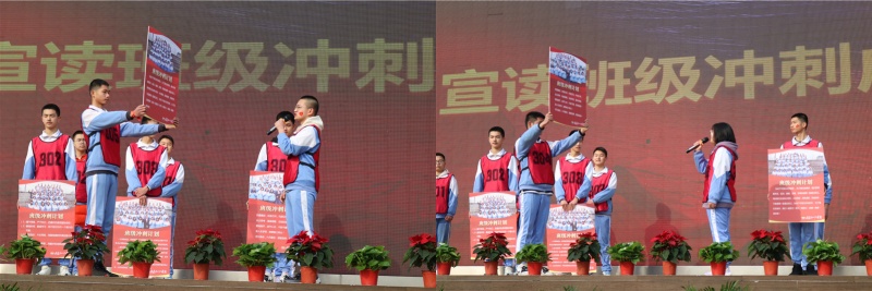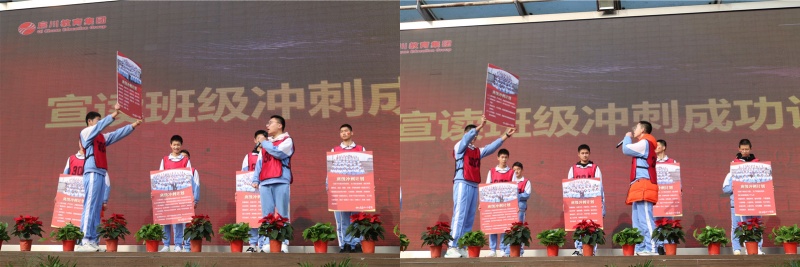 毕业班学生代表上台依次宣读“班级冲刺成功计划”。