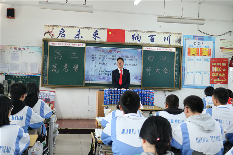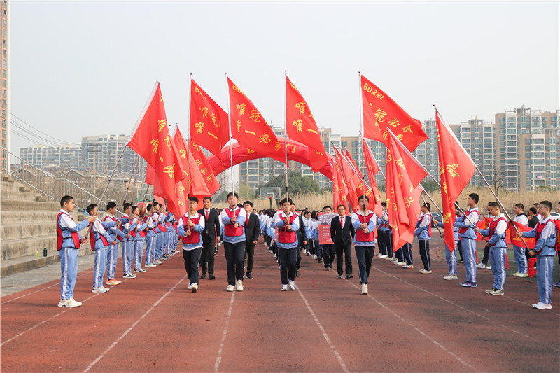 最后,学校校长曹校作动员讲话。曹校长首先代表学校向所有辛勤工作的教职员工表示最诚挚的感谢,向所有正在为梦想努力奋斗的同学们表示最亲切的问候。接着曹校长指出,中高考是每一个学生生涯中重要的节点,不仅需要知识与能力,还需要毅力、勇气和信念。为此,他向同学们提出三点希望:一是咬定目标 全力突破;二是激情拼搏 勇争第一;三是战胜自我 成就梦想。最后,他激励全体同学要义无反顾向着终点奋力冲刺,变誓词为行动,用辛勤和汗水共同书写人生的新篇章,用热爱和执着铸就九一六学校中高考的新辉煌!