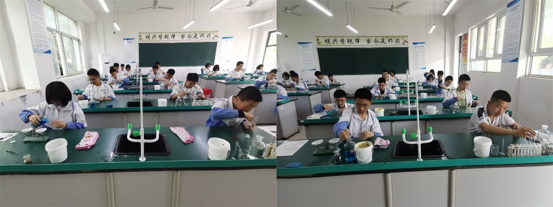 实验课上,老师们明确目标,着重培养学生的规范意识,包括操作规范和书写规范,对学生们高标准、严要求、抓细节,采用先演后练的方法,将实验步骤详细地展示给学生,再将实验中容易出错、容易扣分的事项写在黑板上以提醒学生。同学们认真观察和听讲,严格按照步骤操作,专心细致地反复完成各项实验,反复熟悉实验考试流程,确保每个环节都准确无误。老师们全程指导,及时就实验存在的问题和学生进行交流、探讨,并做出相应的指导。