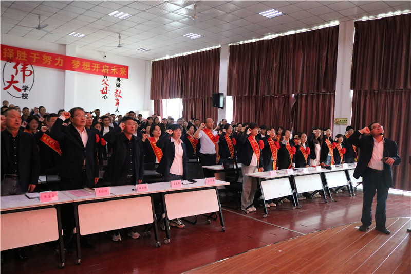 全体教师高举右拳,集体宣誓《教师誓词》。誓言声声,铿锵有力,表达出对党的教育事业的忠诚和履行教师职责的决心。