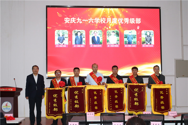 校长曹校长为优秀级部颁发锦旗。