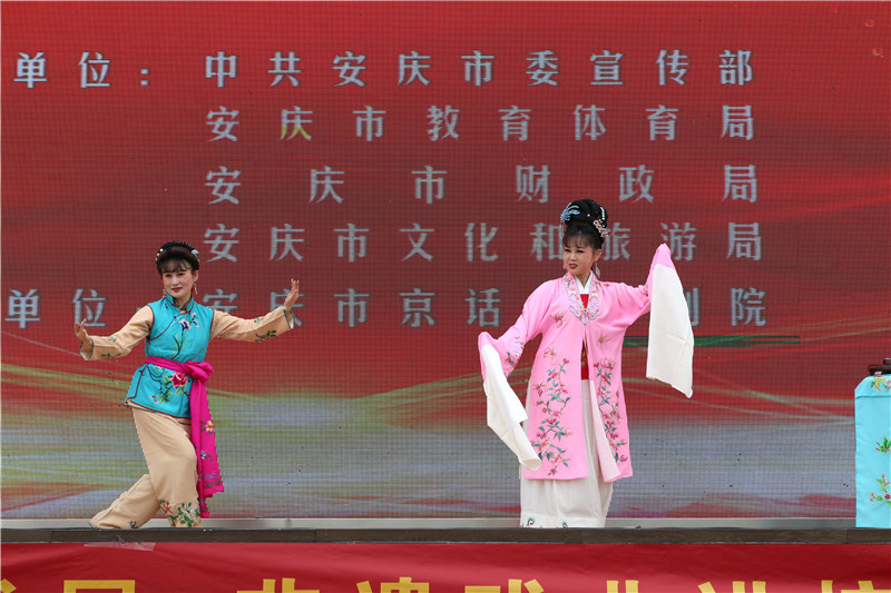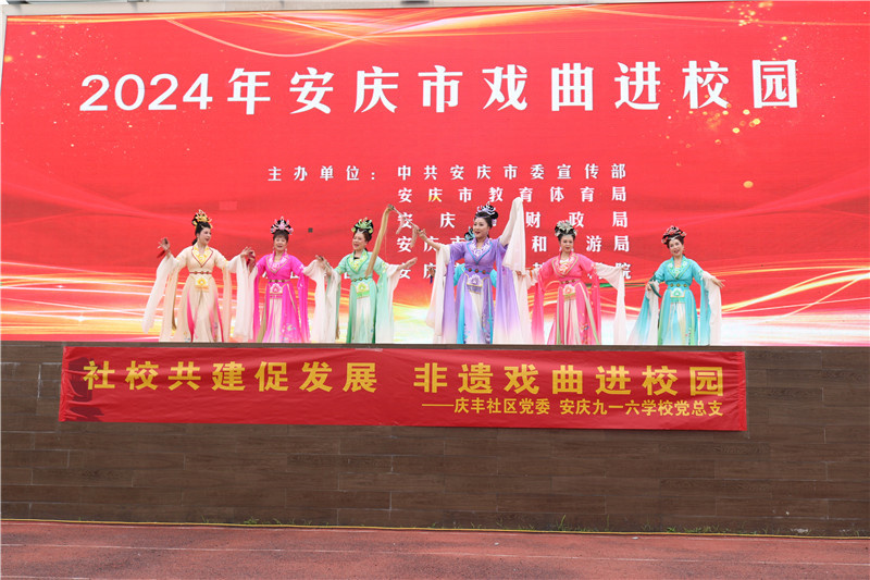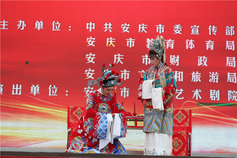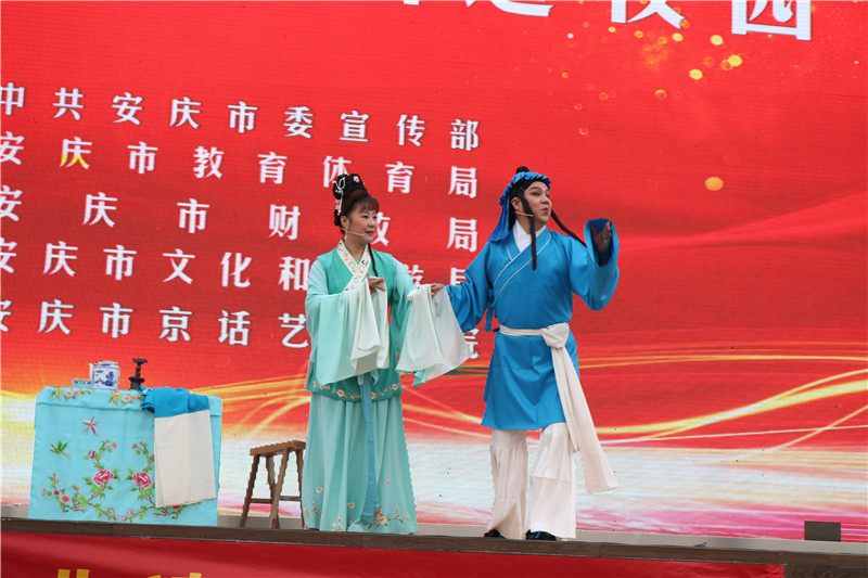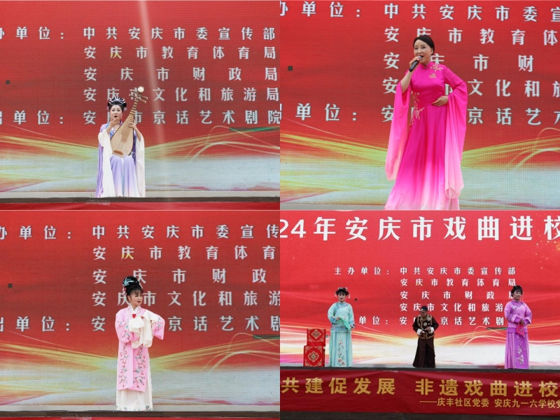 感受戏曲韵味,传承经典文化。为深入学习贯彻习近平文化思想,弘扬中华传统文化,丰富校园文化生活。4月25日下午,由中共安庆市委宣传部、市教体局、市财政局、市文旅局主办,市京话艺术剧院承办的“黄梅戏进校园活动”走进我校,为师生们带来一场精彩的戏曲视听盛宴。庆丰社区党庆丰社区党委书记操礼鹏、副书记方成、居委委员江惠等与学校校长曹校长、书记徐书记共同出席,开展社校党建共建活动。 经典传承 演出中,演员们倾情演绎了《打猪草》、《天仙配》、《女驸马》等黄梅戏经典唱段。他们以优美动听的黄梅唱腔,娴熟高超的表演技巧,丰富多彩的人物造型,演活了一个个生动的人物形象,讲述了一个个寓教于乐的好故事,为全体师生带来了一场艺术的盛宴。同学们感触颇深,感叹中国传统文化的博大精深,激发着同学们传承与保护传统文化的责任意识与使命担当。 徽风皖韵引人醉,非遗文化浸人心。本次活动进一步弘扬了中华优秀传统文化,传承了戏曲文化,培养了学生兴趣爱好,提高了学生艺术修养,增强了学生的民族自豪感和文化自信心。