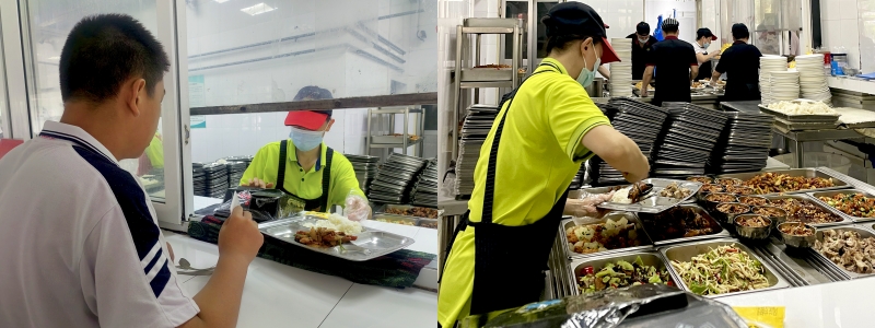 每天食堂师傅们都熟练地准备食材,烹饪出一道道色香味俱佳的菜肴,确保每一道菜都符合师生的口味。除了烹饪,食堂师傅们还要负责清洁和消毒工作,确保就餐环境干净、卫生,为师生提供安全、健康的就餐环境。