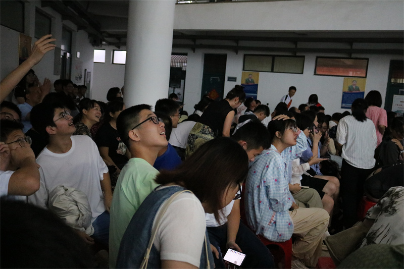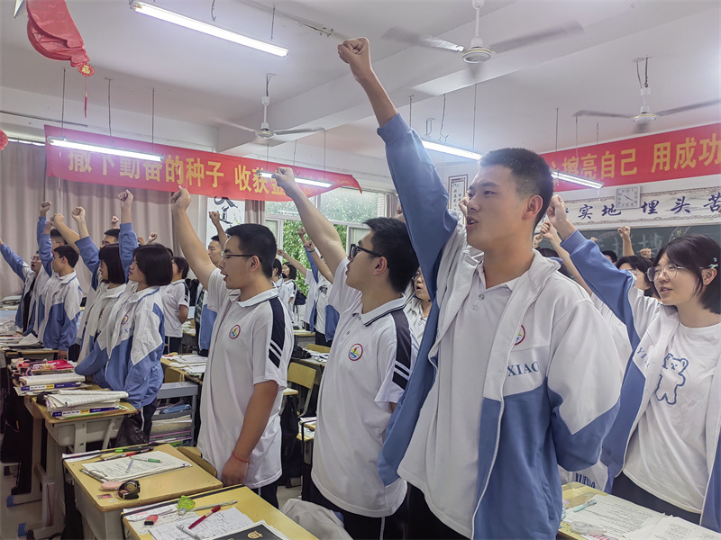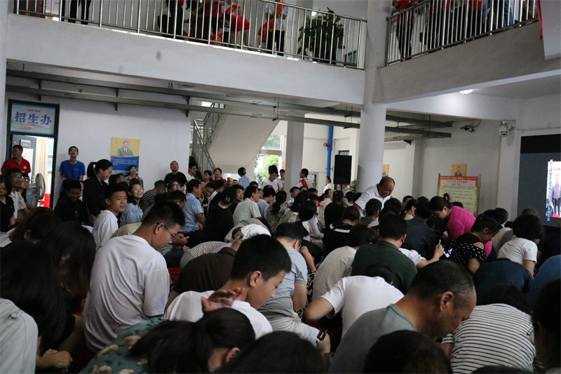 报告会结束后,学生和家长们来到教学楼,观摩学生激情早读、激情唱歌和激情宣誓。