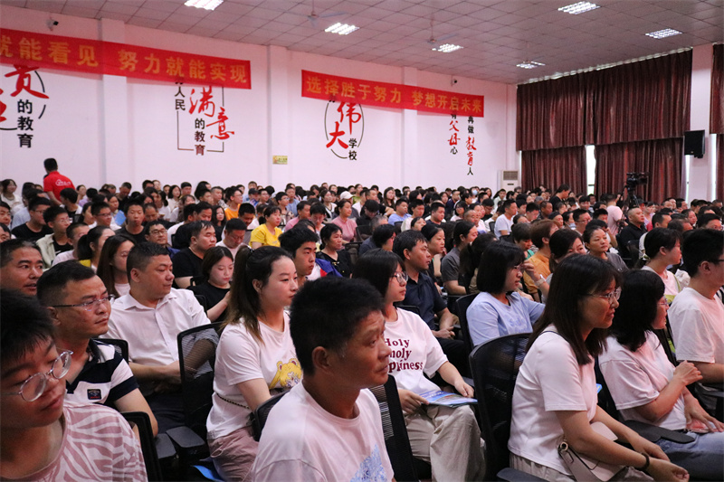 上午八点半,初升高衔接教育报告会准时开始。近2000名学生家长陆续涌入会场,二楼报告厅主会场和一楼分会场高朋满座,人气爆棚,过道和走廊都挤满了认真聆听的家长。