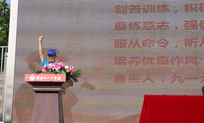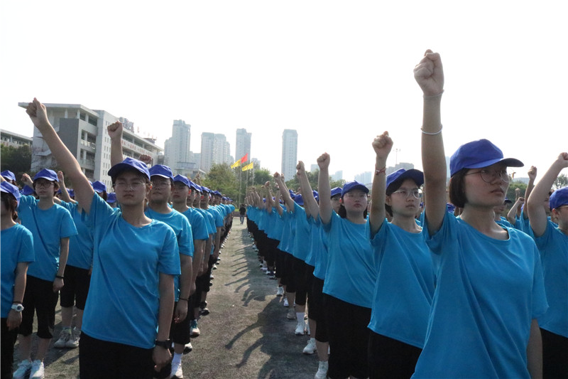 集体宣誓环节,全体学员高举右拳宣誓,“服从命令,听从指挥,培养优良作风,争做优秀学员....”铿锵有力的宣誓声回荡在操场上,激励同学们拼搏奋进,直面挑战。