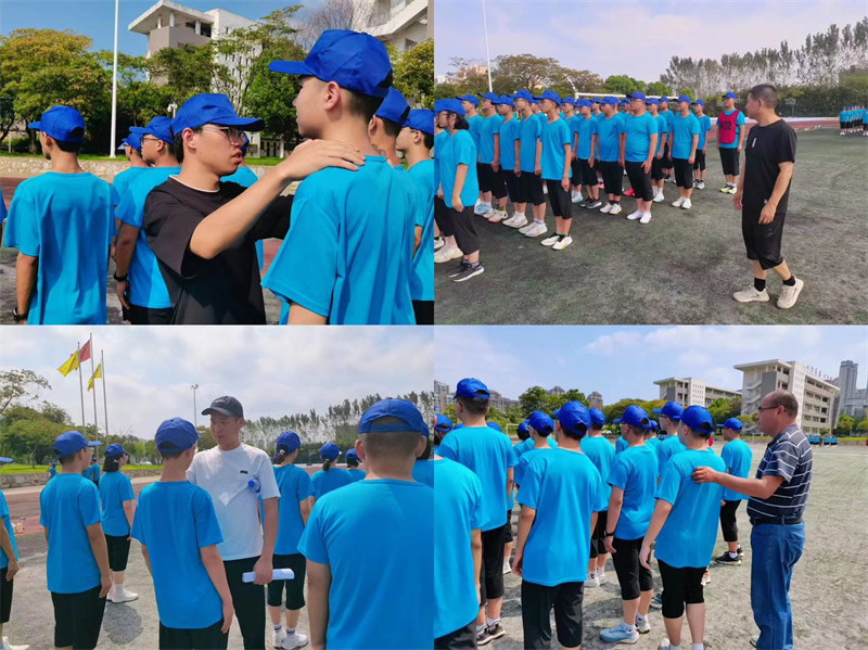 火热训练场,炎炎烈日中奋发向上的学子,用实际行动展现顽强意志,满怀豪情的青年才俊,用辛勤汗水铸就无悔青春。伴随同学们进步的是教官铿锵有力的声音,还有班主任的默默无闻的汗水,训练场上你绝不孤单。每一次的练习,都有班主任耐心地指导和陪同,他们与学生一起接受洗礼。