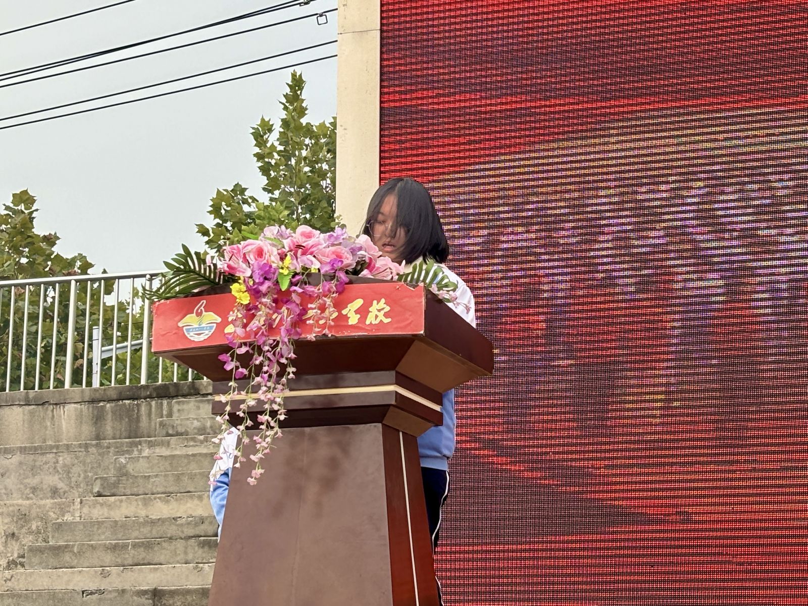 让我们在国旗下共同祝愿,祝愿我们的校园处处开满文明之花!感谢大家的聆听,谢谢!