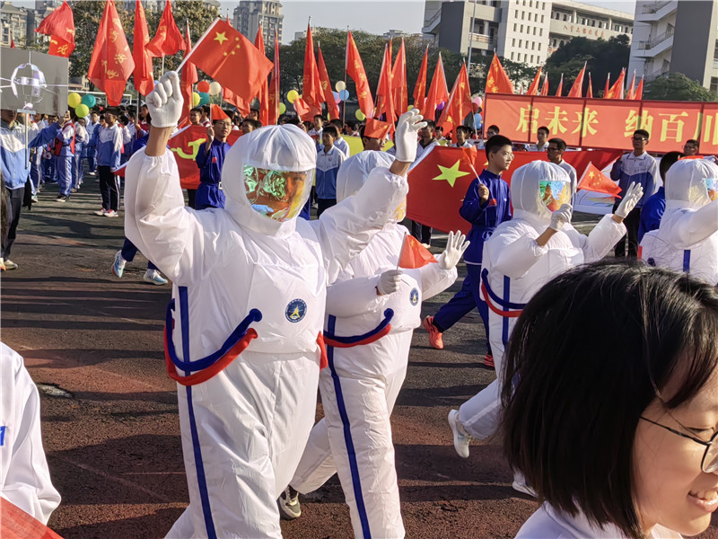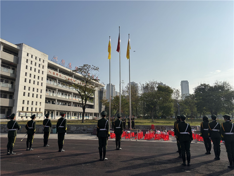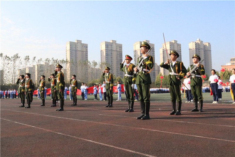 所有方阵入场后,升旗仪式开始。在庄严宏伟的国歌声中,全体师生凝神肃立,鲜艳的五星红旗缓缓升起,迎着微风飘扬。
