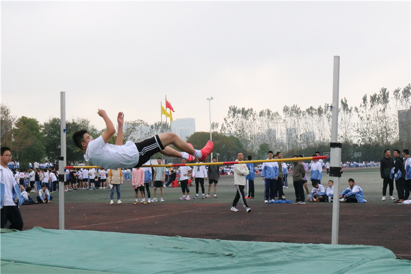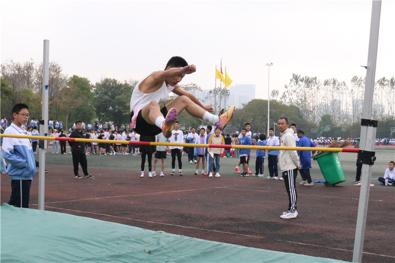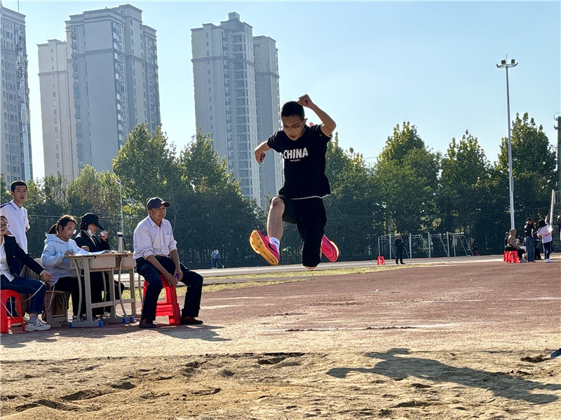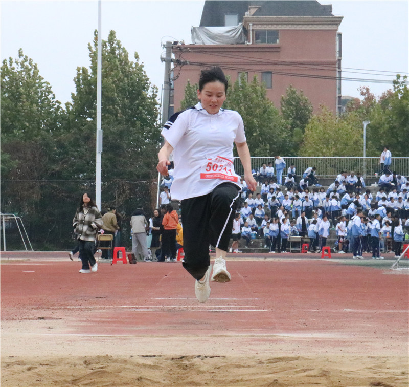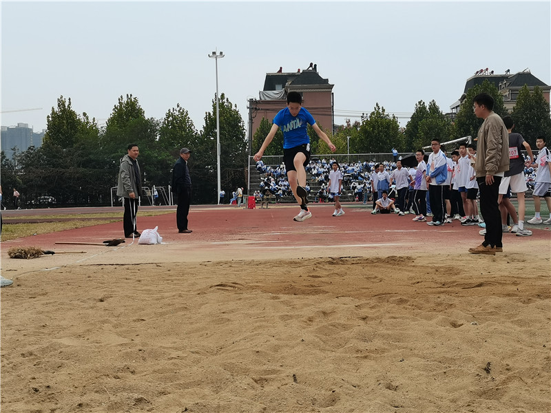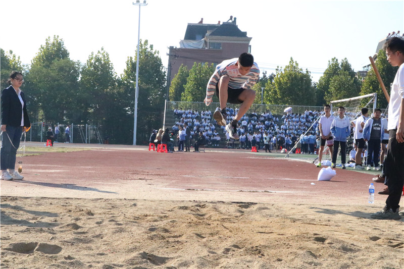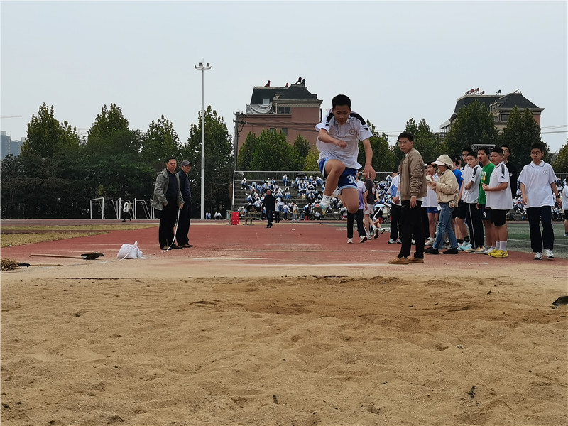 奋力一跳,身轻如燕地掠过沙坑,身后扬起的是尘沙,心中满怀的是热血。
