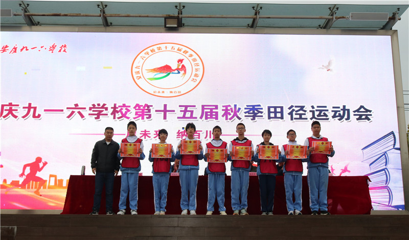 最后,徐书记宣布“安庆九一六学校第十五届秋季田径运动会圆满闭幕!”