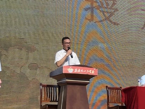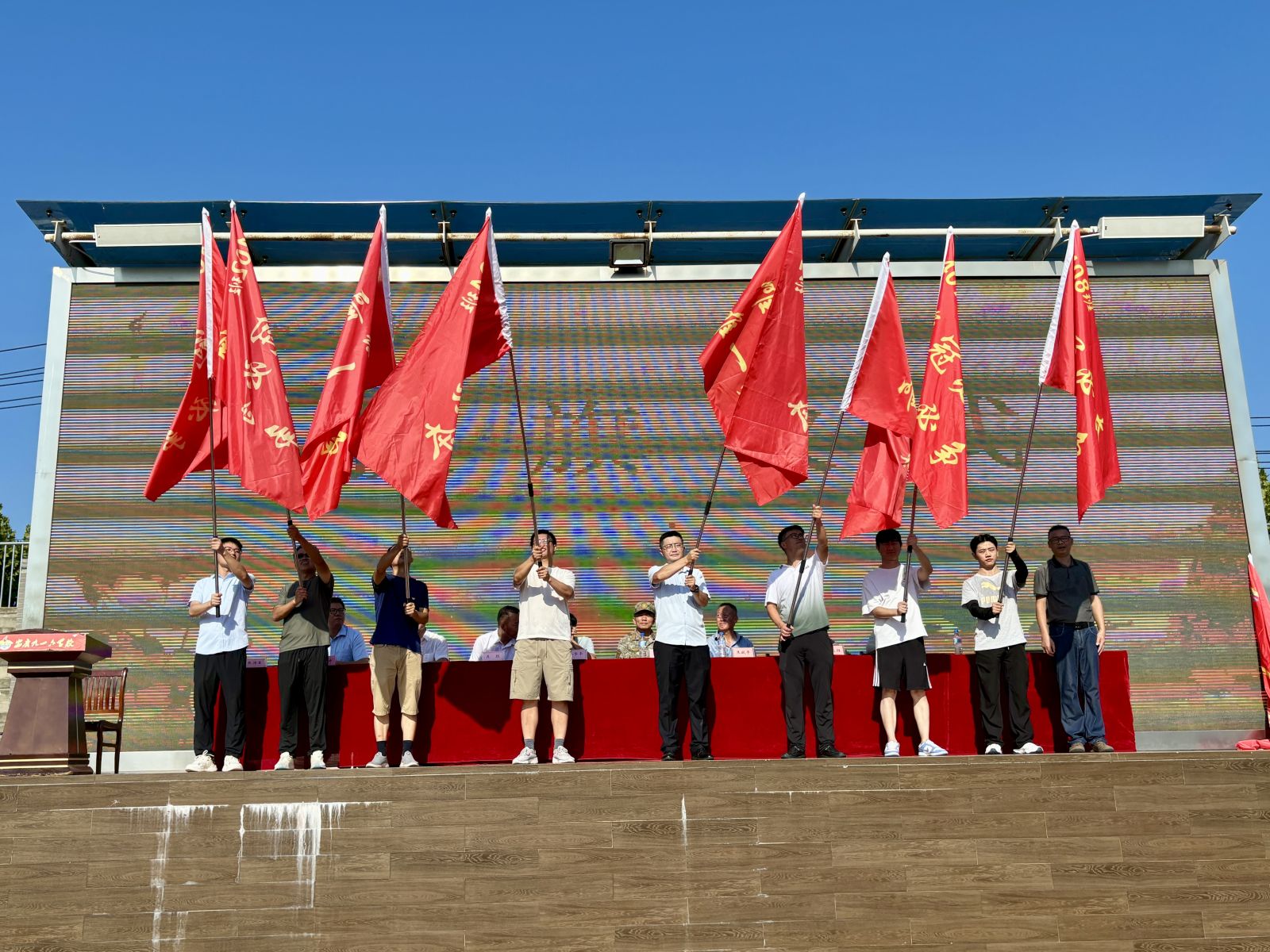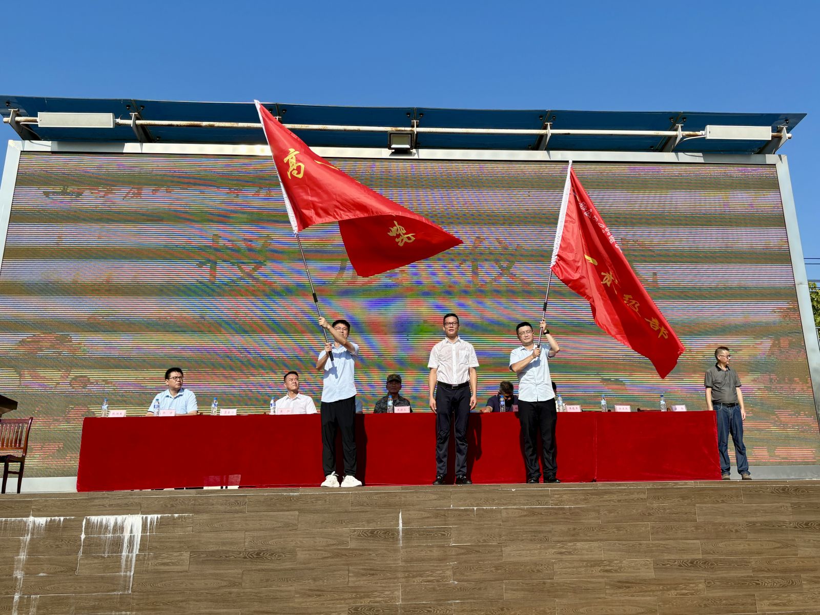 仪式最后,龚校长宣布2025级高一新生夏令营正式开始,并为高一年级两个级部授旗。高中德育主任徐主任给各班授班旗,各班班主任郑重地接过班旗并挥舞宣示。飘扬的旗帜承载着少年们的梦想,夏令营征程正式启航。