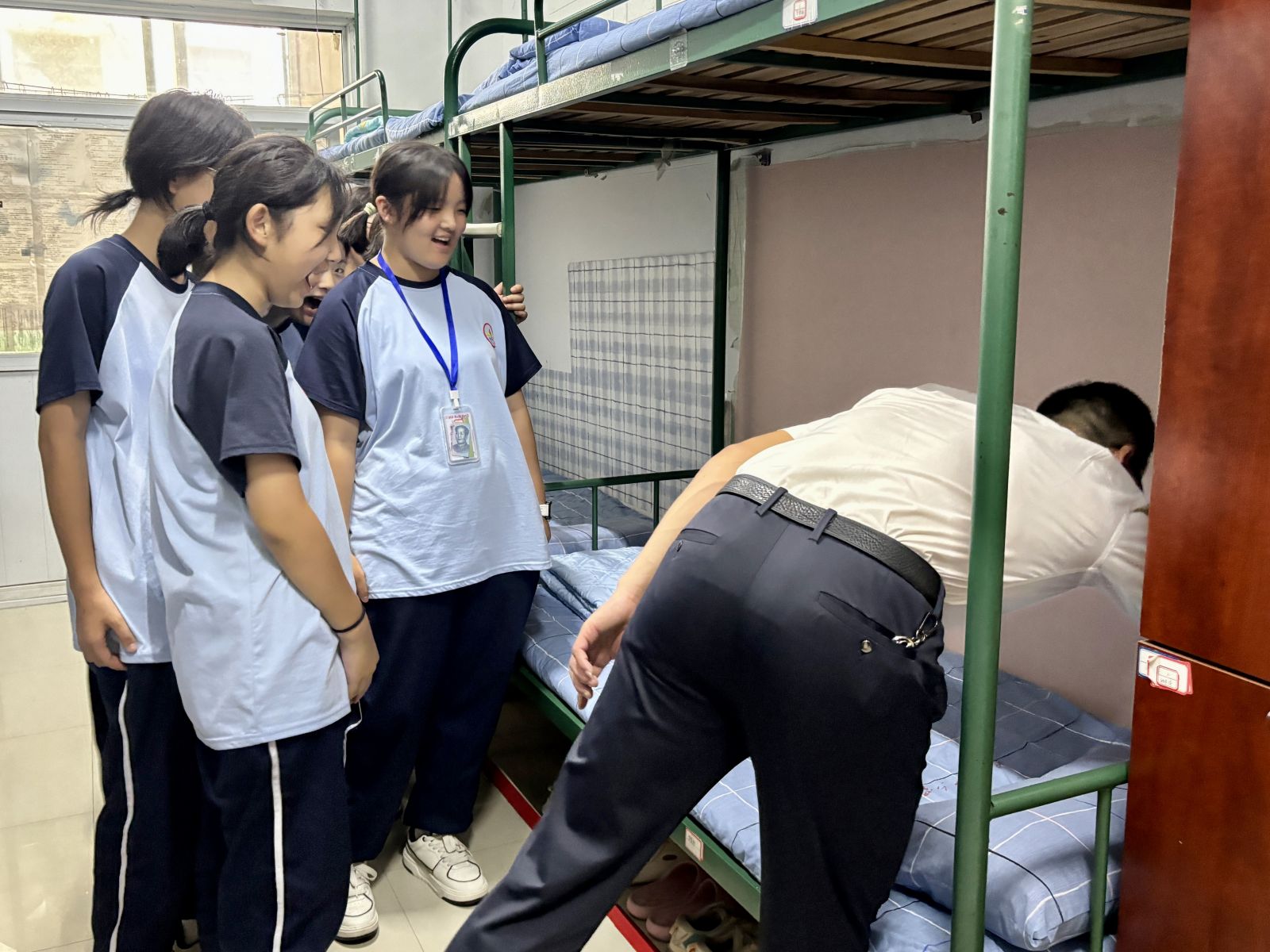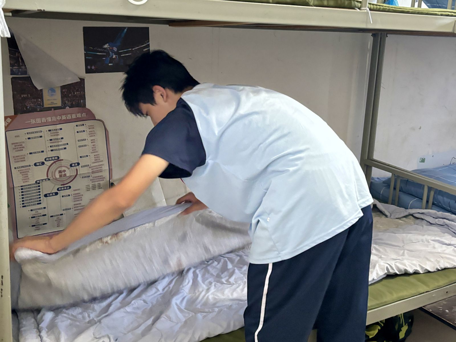 训练场外,他们是“大家长”。一天训练结束,班主任的工作并未停止。他们深入到学生中间,关心同学们的生活,提醒大家合理作息,注意身体;他们及时与学生沟通,了解训练情况,反馈学生状态;他们还在带领学生学会独立生活,亲手整理内务,每一步都是自立的印记。