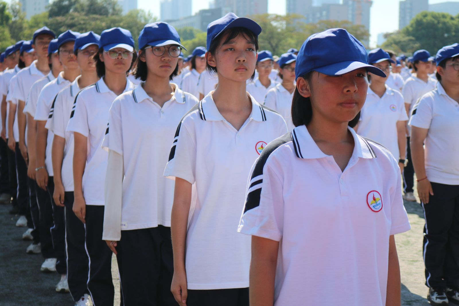 稍息、坐下、看齐。意气风发的少年,在阳光之下一遍一遍地练习,磨炼顽强的斗志,培养吃苦的精神。目光如炬,展青春靓丽姿态;整队训练,显少年英姿。