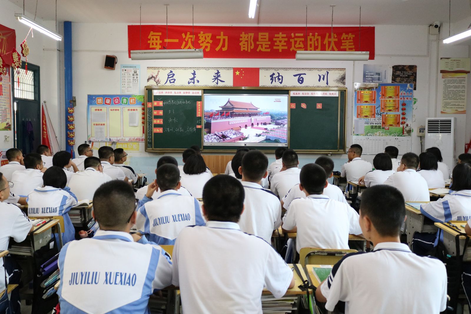 观看过程中,师生们情绪高昂、精神振奋。当军容严整、意气风发的受阅官兵庄严行进通过天安门广场时,现场多次响起热烈掌声。