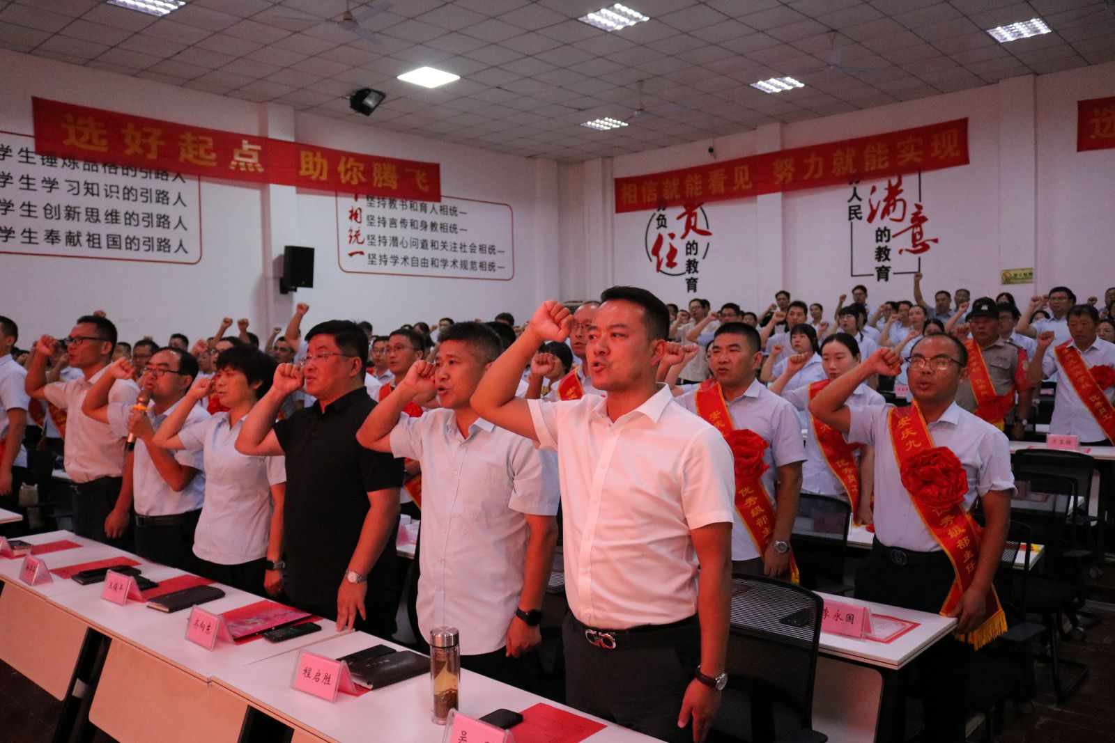 大会在庄严的宣誓中拉开帷幕。全体师生肃立,振臂高呼,展现了九一六人昂扬向上的精神风貌。