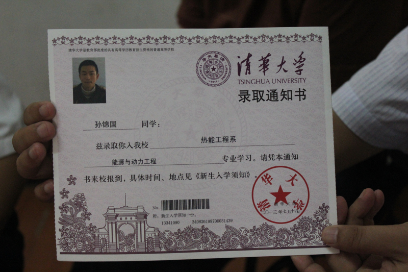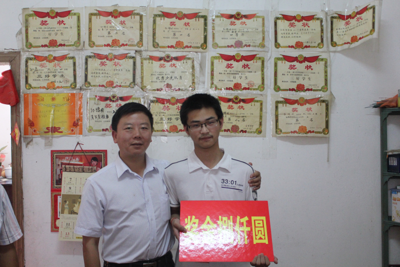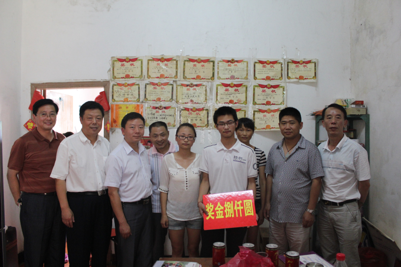 近日,学校收到孙锦国同学的清华大学录取通知书。7月26日上午,校长周诗长受董事长胡玉友的委托率学校领导前往宿松,来到孙锦国同学家中贺喜并送上奖金,对该生在高考中取得的佳绩表示祝贺并提出期望。孙锦国同学和家人由衷地说道:“感谢学校领导和老师三年来的关爱和培养,孩子能取得这样的成绩我们很满意!”
